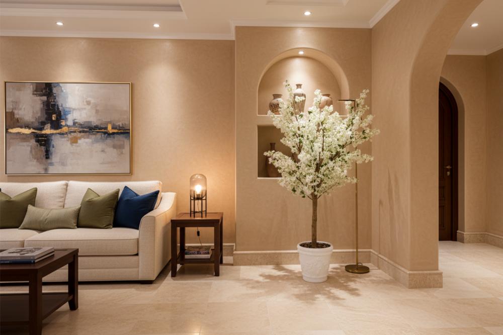 3. تأثير مضيء: الأزهار البيضاء تعكس الضوء وتساعد على إضفاء إحساس بالاتساع والإضاءة على المكان.
